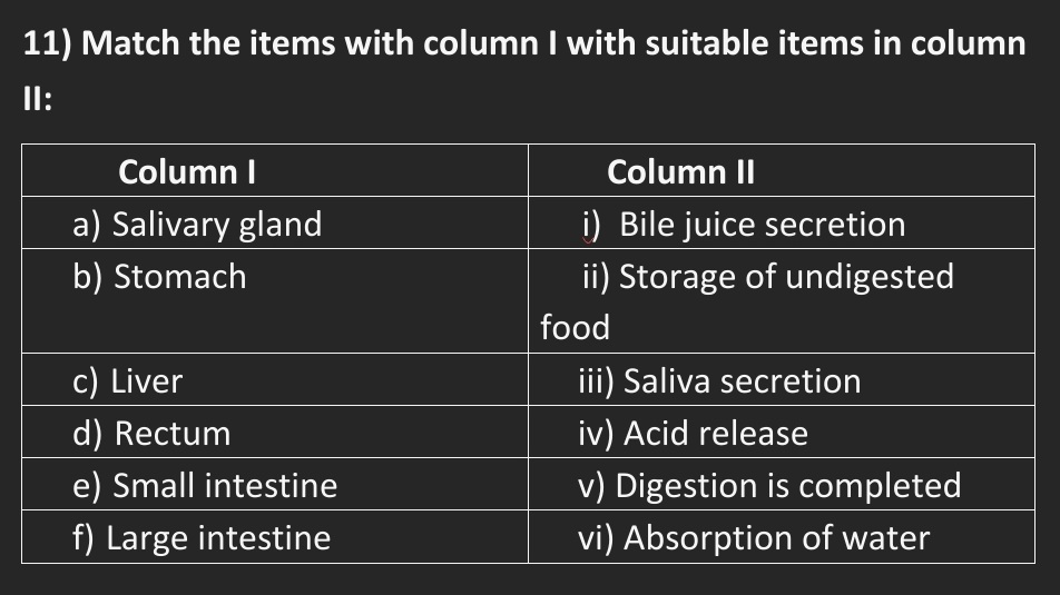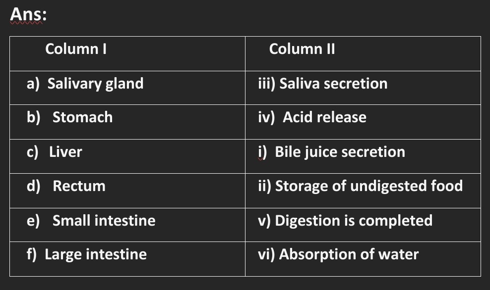 Ans:(i) Absorption of food- small intestine.